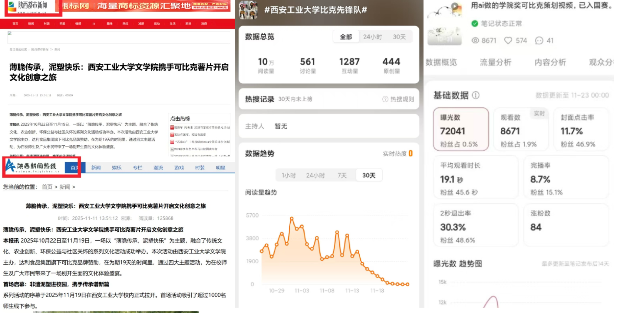 奖是由中国广告协会主办的国家级大学生创意赛事,创办于1999年,历经二十余载发展,已成为覆盖百万师生的全国性创意标杆平台,比赛影响力从高校延伸至创意产业全链条,成为品牌探索年轻化、高校实践教学落地、青年人才脱颖而出的核心平台,更是教育部校企合作方针的实践典范。本次秋季赛汇聚全国1830所高校5309个院系80多万件创意作品,我院学子多个作品在众多佳作中崭露头角。其中,王晓帆等同学团队的《薄脆传承,泥塑快乐》项目,在“达利食品集团可比克策划案大赛”命题中,分别在营销策划、成果传播、小红书传播三个赛道斩获三等奖共3项。该策划案以“可比克”品牌为载体,创新提出“在分享快乐中,传承指尖上的艺术记忆”核心理念,将非物质文化遗产“凤翔泥塑”的艺术精髓与现代休闲零食文化巧妙融合。其独特之处不仅在于策划的巧思,更在于策划案中设计并成功执行了一系列线上线下联动的整合传播活动,体现了极强的执行力与创新转化能力。