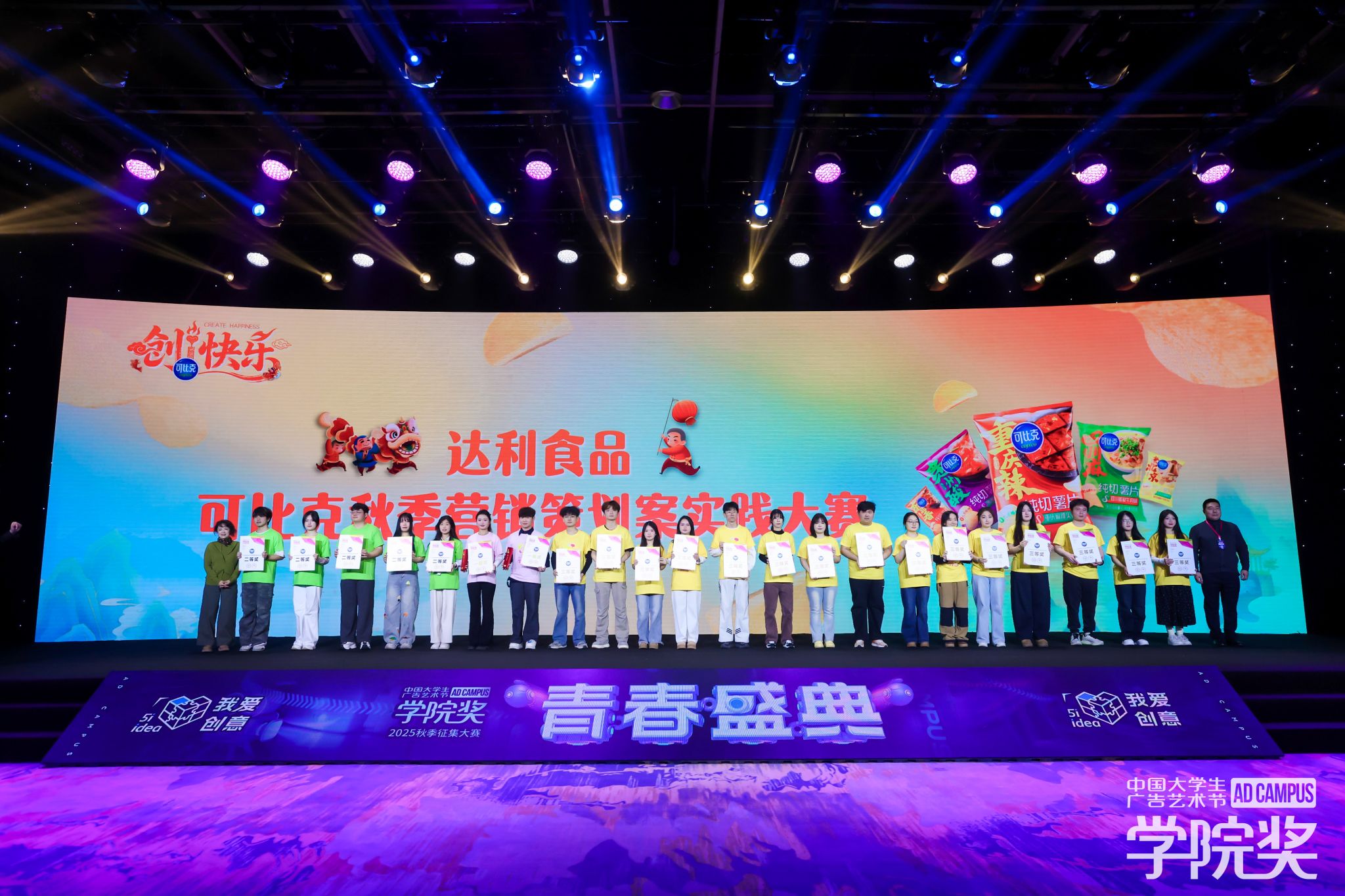 赛事主办方及命题企业达利食品集团对团队的出色创意与专业能力给予了高度肯定,学生代表王晓帆同学登台领奖,命题企业负责人在创意盛典现场单独对作品“点赞”,并向学生团队全体成员颁发了企业实习证明。