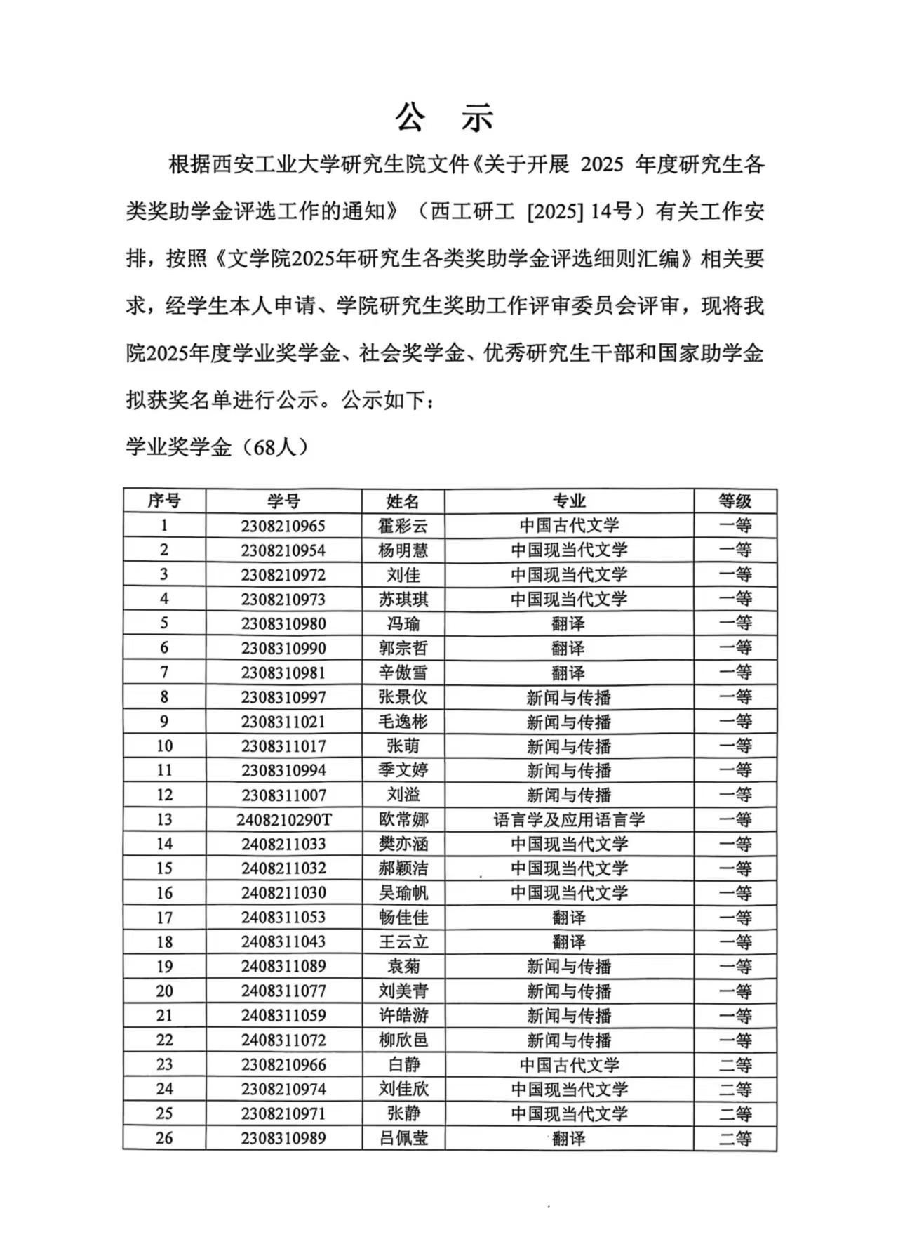 偷拍自慰 2025年度研究生晨露奖学金、学业奖学金、社会奖学金、优秀研究生干部和国家助学金拟获奖名单公示