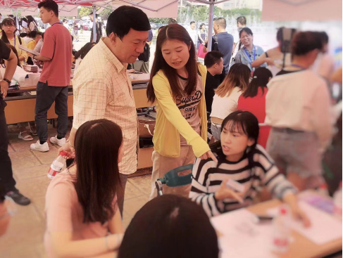 校内迎新工作也顺利开展,院团干部和迎新志愿者在经纬广场上引导新生办理注册、递交材料、办理校园卡等各项入学手续。院党委书记朱晋中也到现场了解新生报到情况,鼓励志愿者用热心、耐心和责任心助力迎新工作,偷拍自慰