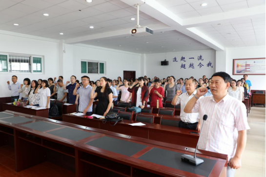 随后,全体教师在朱晋中的带领下共同宣誓。