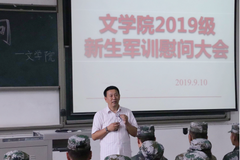 对承训教官和全体参训新生表达了真切的关心和祝福,并对同学们认真严谨、不畏艰苦、坚持训练的精神予以了充分肯定;鼓励同学们珍惜难得的军训时光,全心投入,戒骄戒躁,增强组织纪律观念,培养团队合作意识,养成良好生活习惯。
