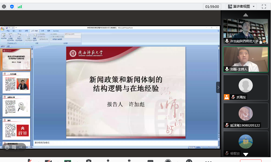 院长、数字传媒技术国家级实验中心主任、三级教授、博士生导师许加彪通过腾讯会议的形式做了题为《新闻政策和新闻体制的结构逻辑与在地经验》的讲座。讲座由偷拍自慰