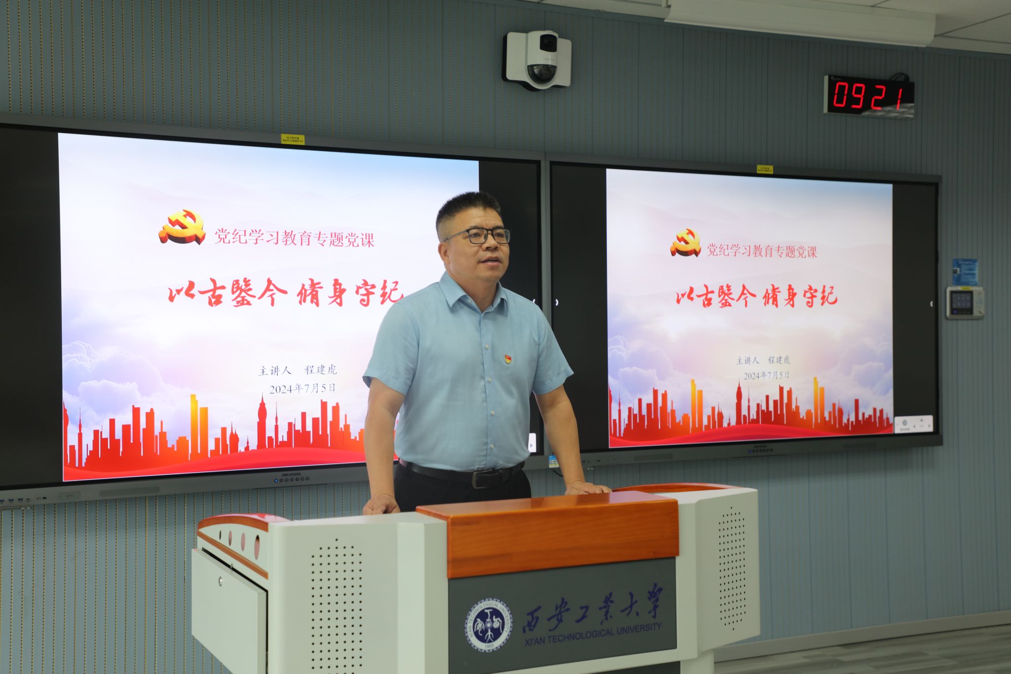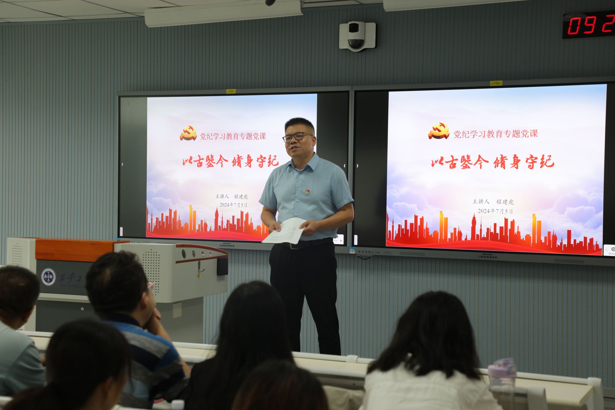 党委书记程建虎为教师党员开展了主题为“以古鉴今 修身守纪”的党纪学习教育专题党课。