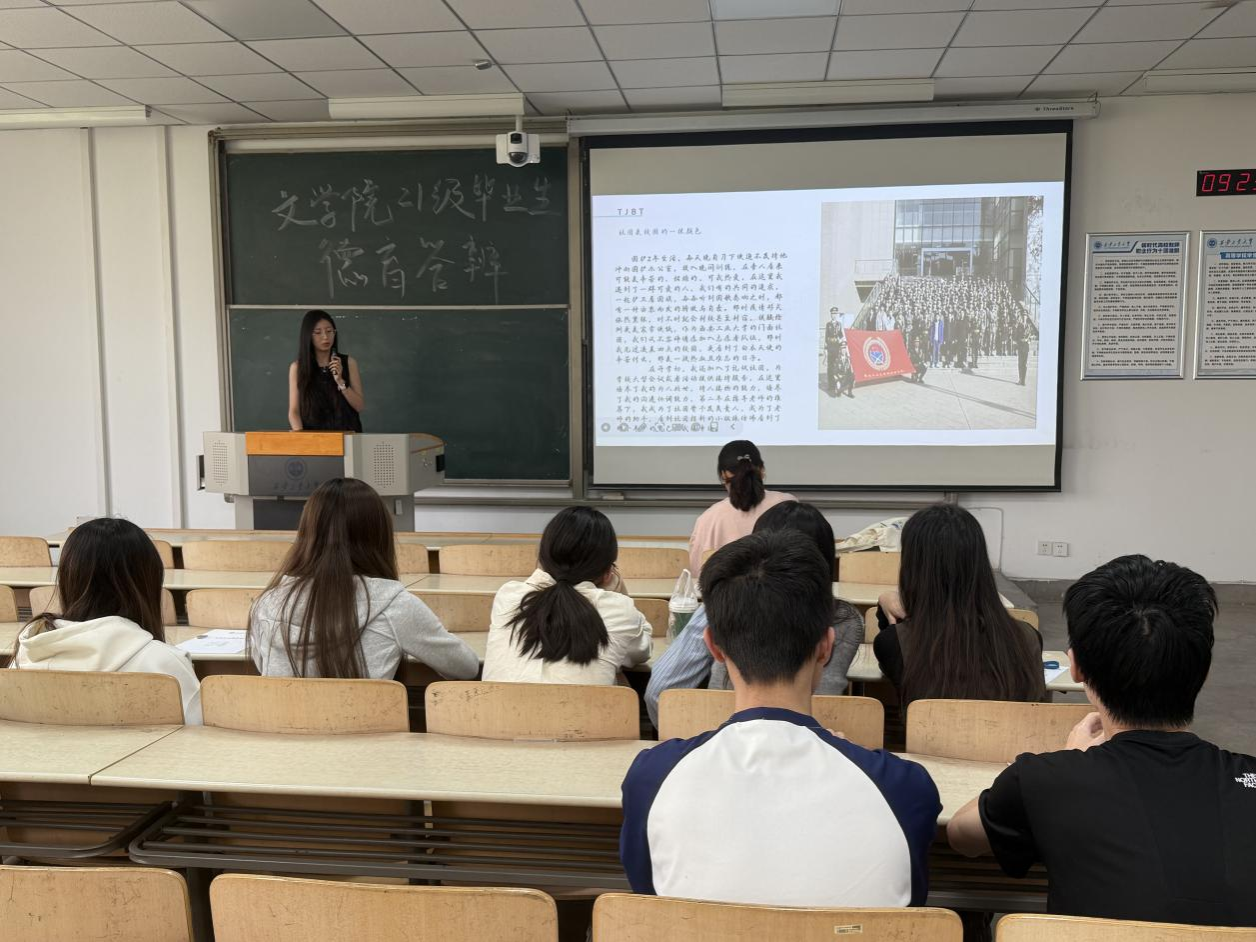 在德育答辩现场,每位同学精心准备了四到五分钟的汇报 PPT。PPT 内容图文并茂,生动地将德育论文中的精华部分展示出来。在个人成长板块,同学们通过照片、视频等资料展示了自己从初入校园时的青涩到如今自信成熟的蜕变;学业板块则以详实的数据和证书呈现了专业课程学习、学术研究、学科竞赛等方面的成果;生活板块分享了丰富多彩的校园生活点滴,如参与志愿服务、文艺演出等;职业板块则介绍了实习经历、求职过程以及未来的职业规划蓝图。毕业生们自信大方地进行汇报,回答评委老师提出的问题,展现出了偷拍自慰