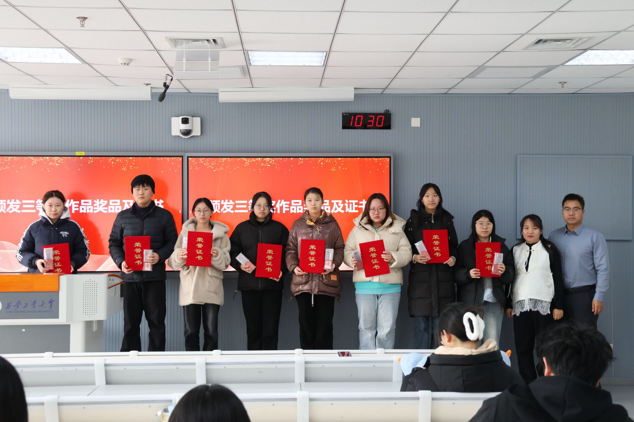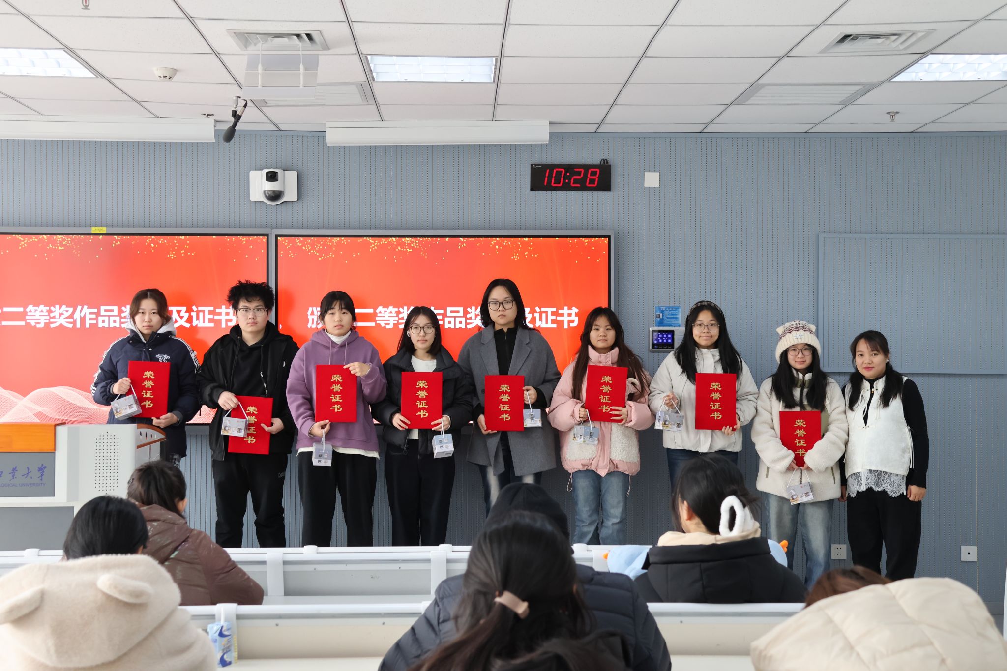 在评审阶段,工作人员依据作品主题契合度、内容质量、创意表现力等核心维度,对所有参赛作品进行严格审核,最终评定出四个赛道一等奖作品各一项,二等奖作品各2项,三等奖作品各3项,共计24项优秀作品。12月23日,获奖作品颁奖仪式在教9-319进行,偷拍自慰