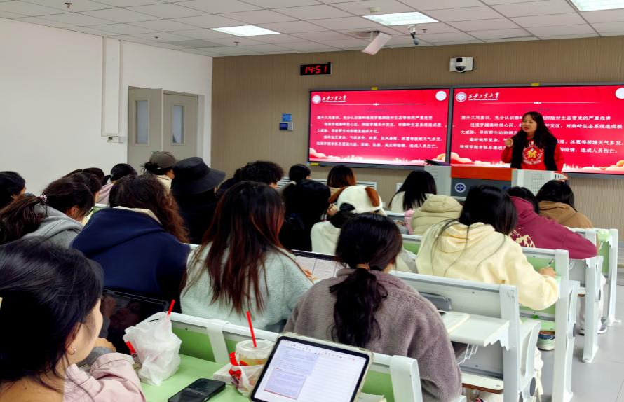 随后,院团委书记王丹丹从“生命保护、生态守护与法律遵守”三个维度出发,结合真实案例与影像资料,深入剖析非法穿越活动所面临的极端自然风险、可能引发的生态破坏问题以及所需承担的法律后果,教育学生敬畏自然、珍爱生命,主动增强环保意识与自我防护能力。