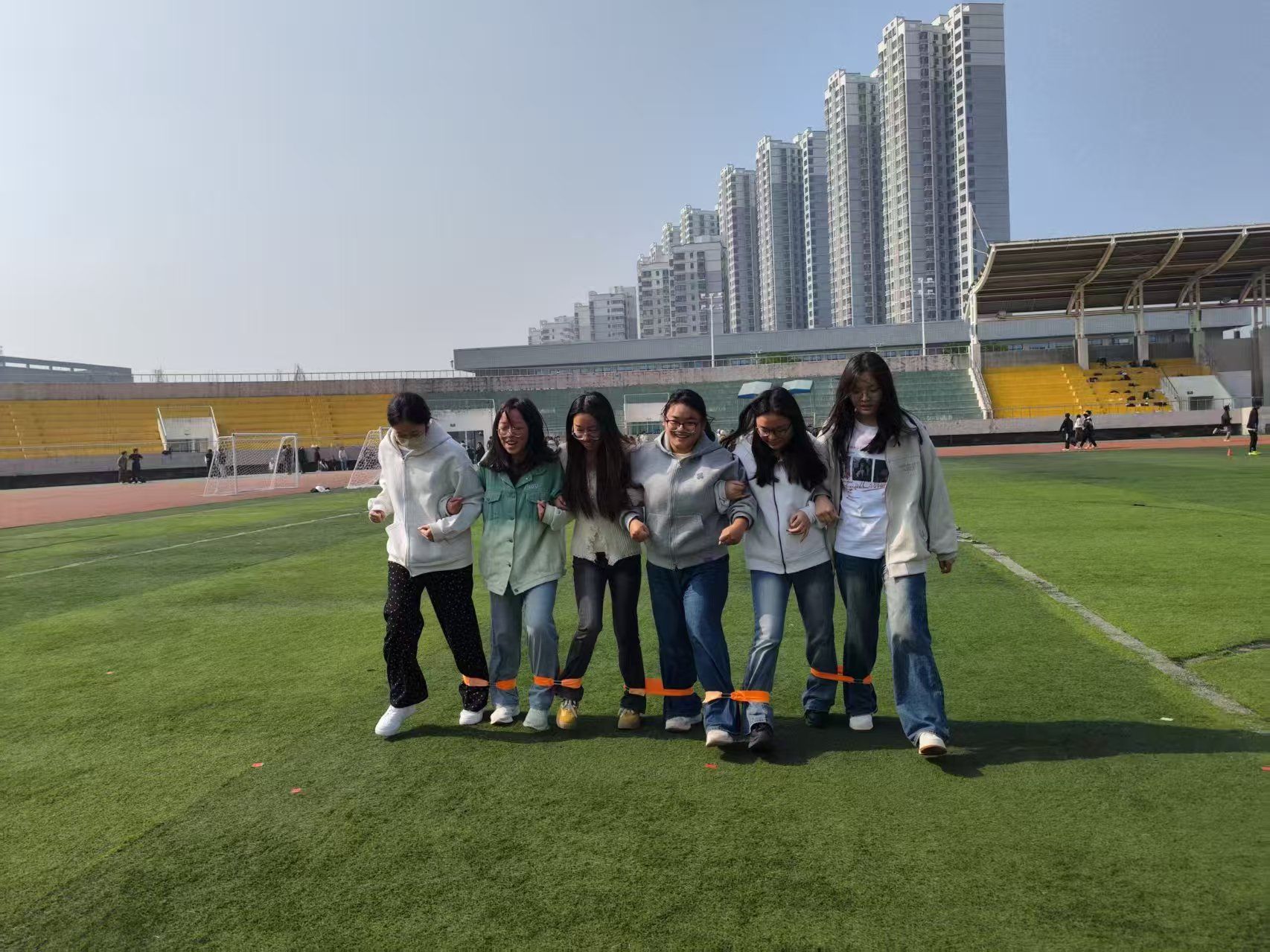 10月30日,运动会收官之战移师未央操场,男子组100米、女子组100米与多人多足比赛轮番登场。百米赛道上,参赛选手们蓄势待发,随着哨声响起,大家如离弦之箭般奋力冲刺,耳畔是呼啸的风声与热烈的加油声,终点线前的每一步都彰显着拼搏精神;多人多足比赛中,6人一组的参赛队伍并肩而立、绑腿前行,“一二、一二”的统一口号响彻操场,队员们步伐一致、相互扶持,在50米的赛道上诠释着“同心同足”的团队力量。